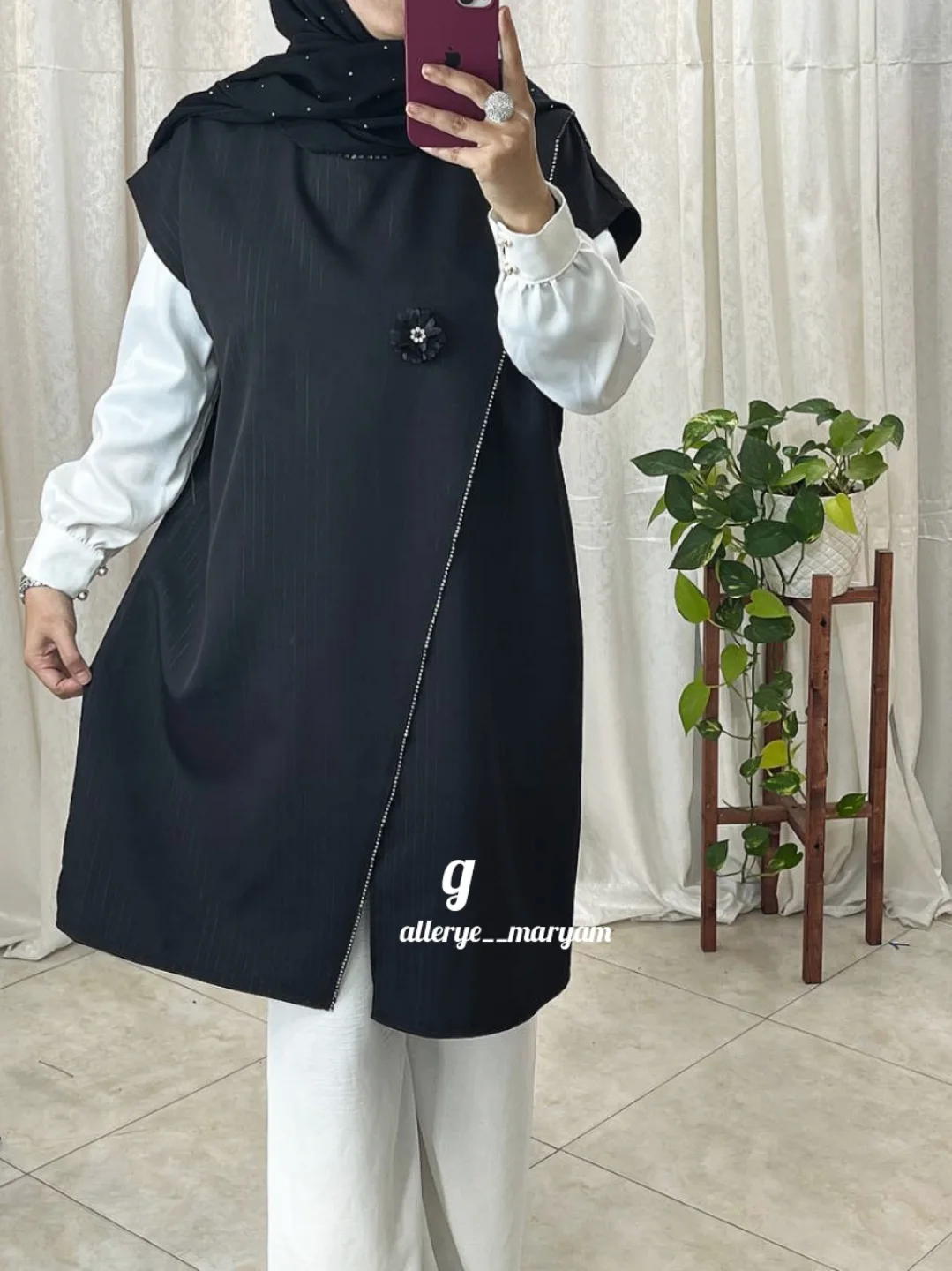 این وست شیک مجلسی با قد دلخواه در دو سایز سایز ۱ دورسینه ۱۲۰ سایز ۲ دور سینه ۱۴۰ تولید میشه سفارشی دوزی هم پذیرفته میشه . وست بدون زیر سارافونی هست و شما میتونید با هر رنگ لباسی استایل کنید